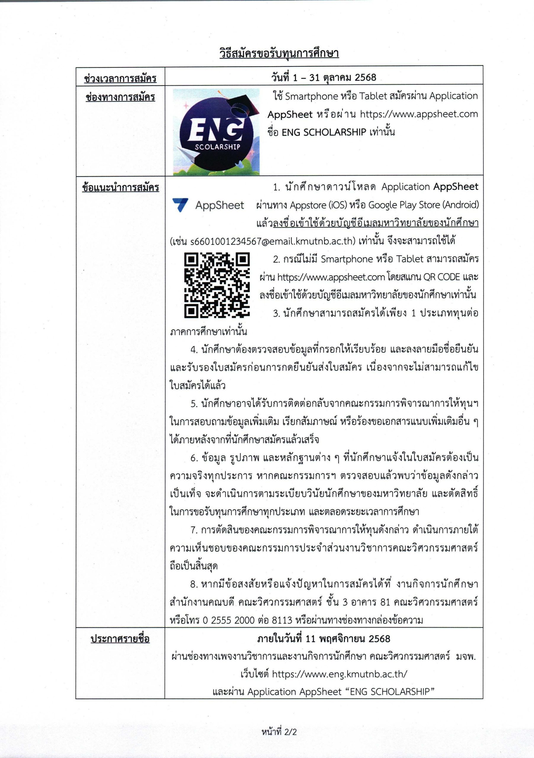 สมัครผ่านทาง Application AppSheet “ENG SCHOLARSHIP”