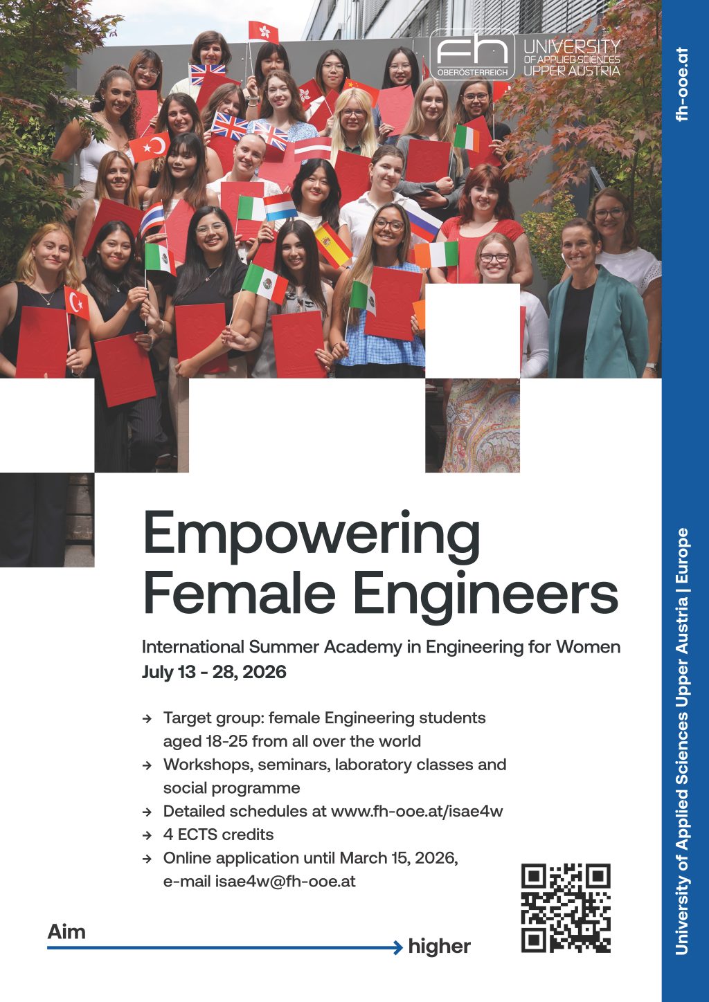 12th International Summer Academy in Engineering for Women – ISAE4W anniversary edition takes place from 13th to 28th July 2026! The International Summer Academy for Women in Engineering (ISAE4W) offers an ideal opportunity for a selected group of highly-motivated and talented women (high school, college or undergraduate students) to experience top-class and challenging university-level coursework. The…