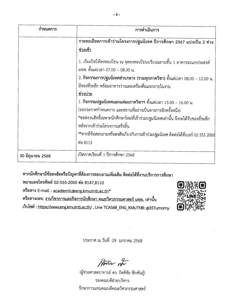 Announcement : List of Student Qualifiers from Round 1 Direct Admission to English/International Engineering Programs, Bachelor of Engineering Academic Year 2025