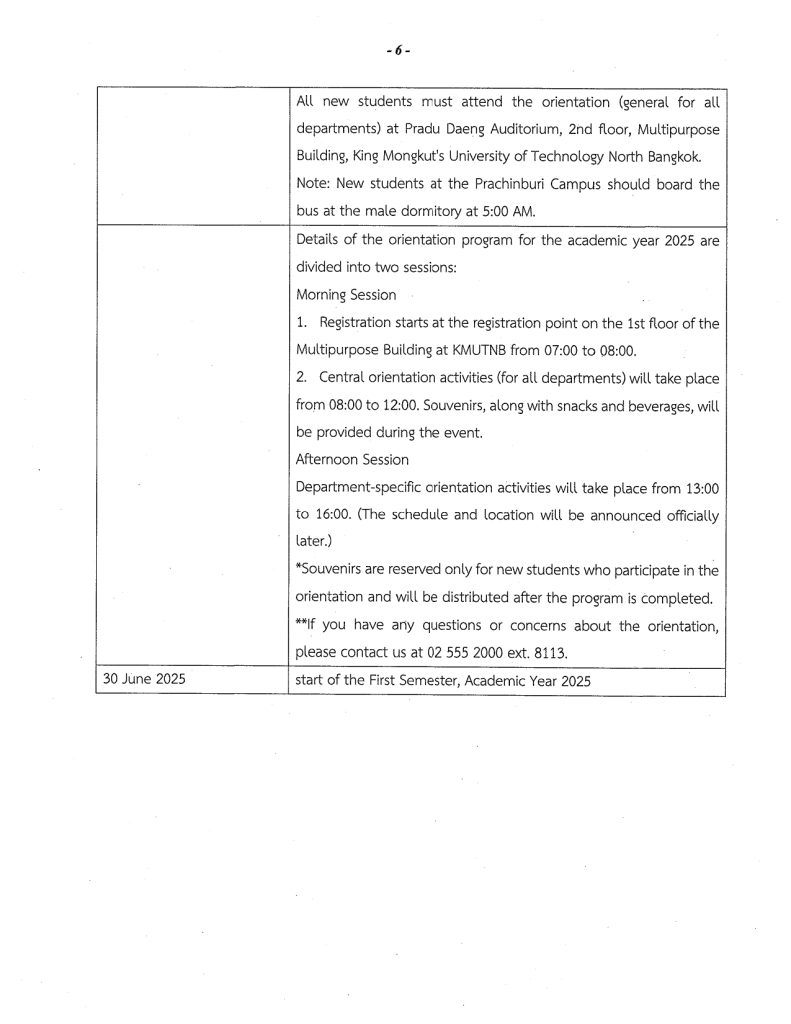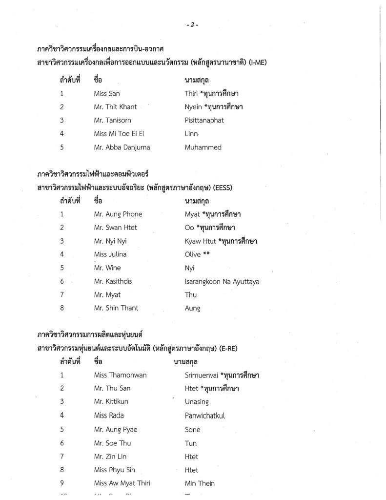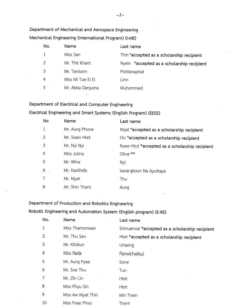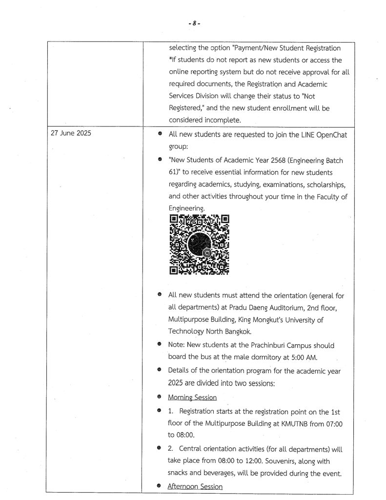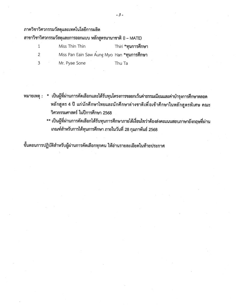 Announcement : List of Student Qualifiers from Round 1 Direct Admission to English/International Engineering Programs, Bachelor of Engineering Academic Year 2025