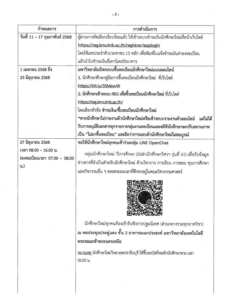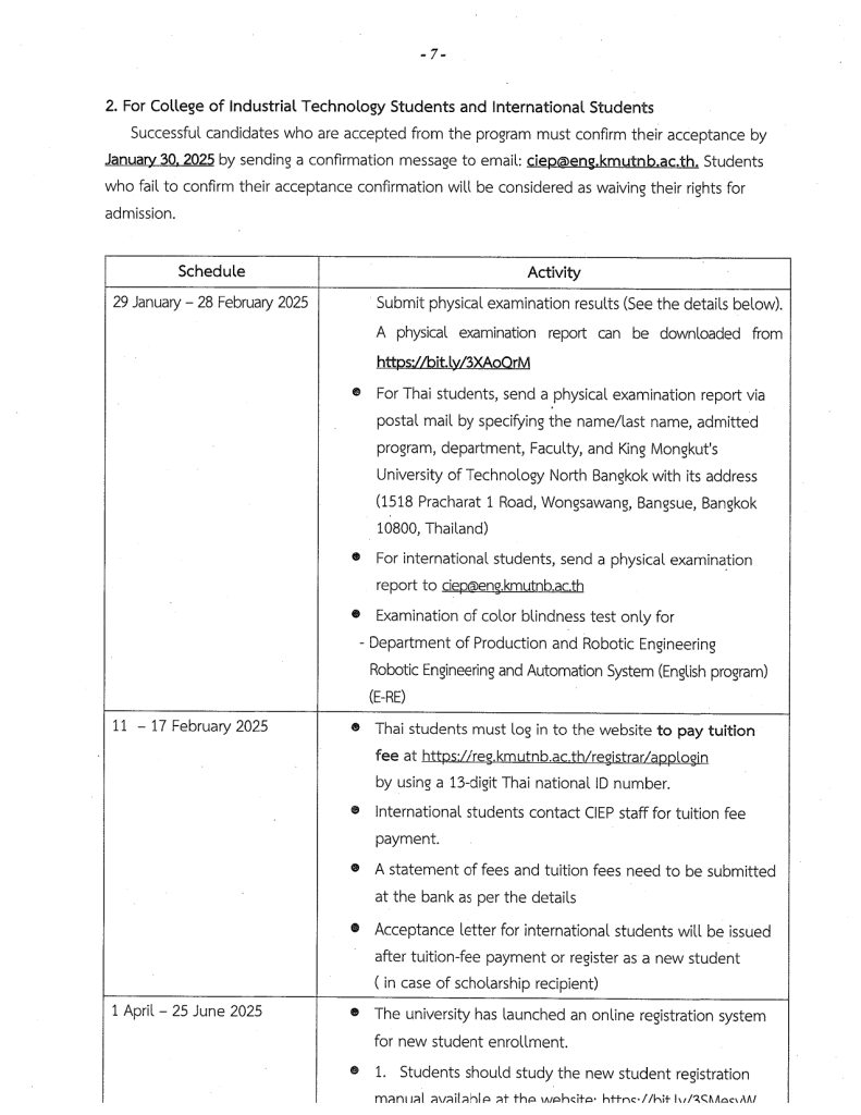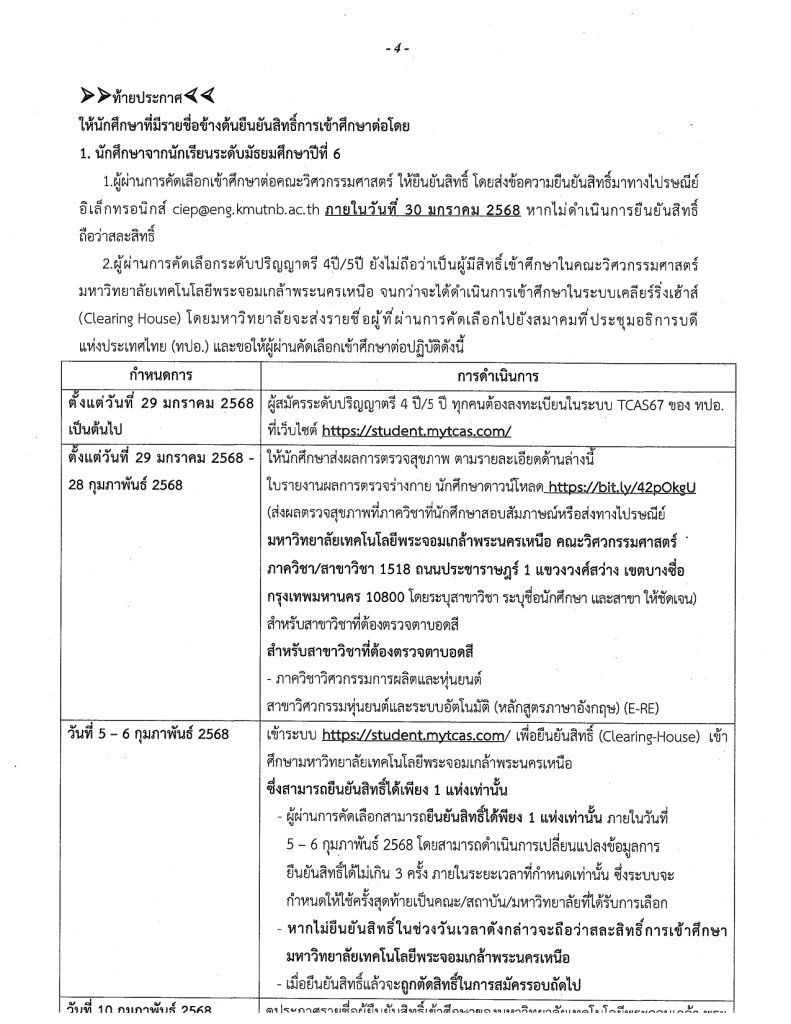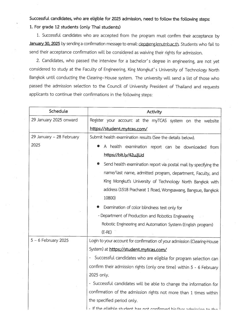Faculty of Engineering, King Mongkut’s University of Technology North Bangkok, Thailand has announced for 2025 admission round 1 to undergraduate programs, which are listed as follows: