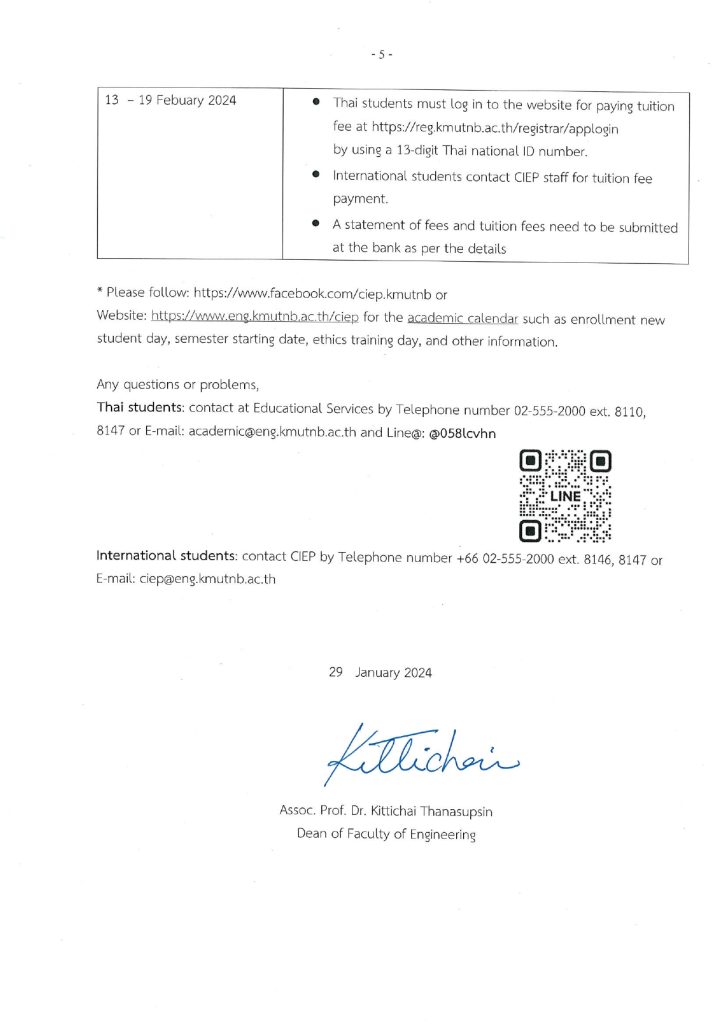 Announcement of Faculty of Engineering List of Student Qualifiers from Round 1 Direct Admission to English/International Engineering Programs, Bachelor of Engineering Academic Year 2024
