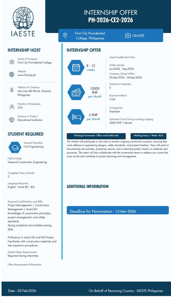 โอกาสดีสำหรับนักศึกษาที่สนใจหาประสบการณ์การฝึกงานในต่างประเทศ! โครงการ IAESTE เปิดรับสมัครนักศึกษาเพื่อรับทุนฝึกงานใน 4 สถาบัน/บริษัทชั้นนำในต่างประเทศ ประจำปี 2026 โดยมีรายละเอียดดังนี้