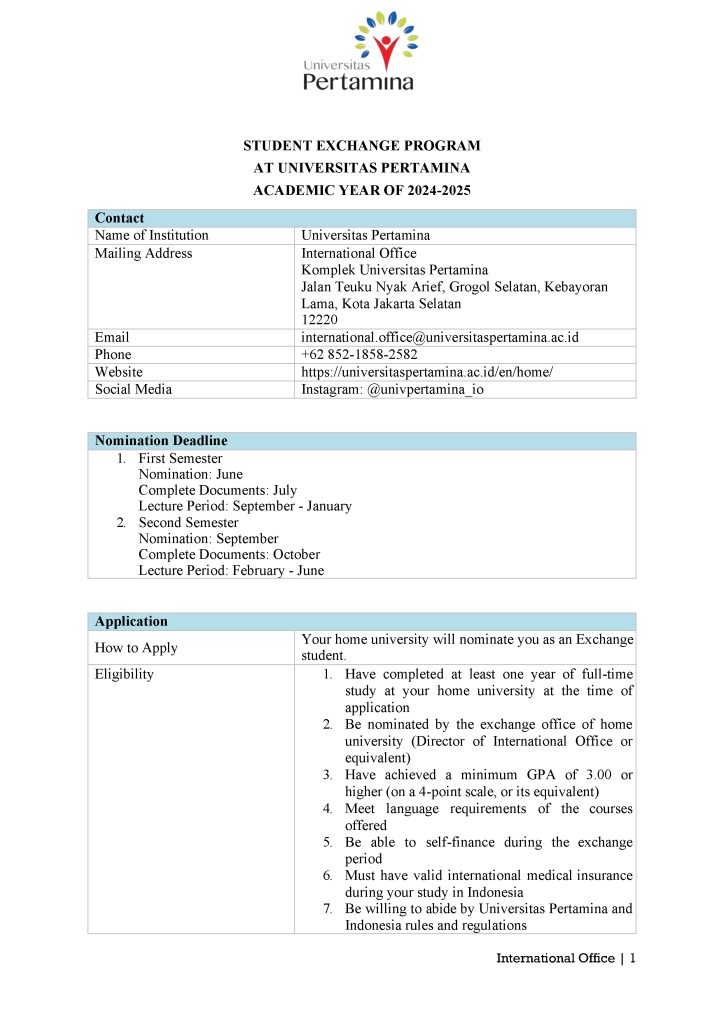 Student Exchange Program at Universitas Pertamina, Indonesia for the upcoming Fall Semester 2025.