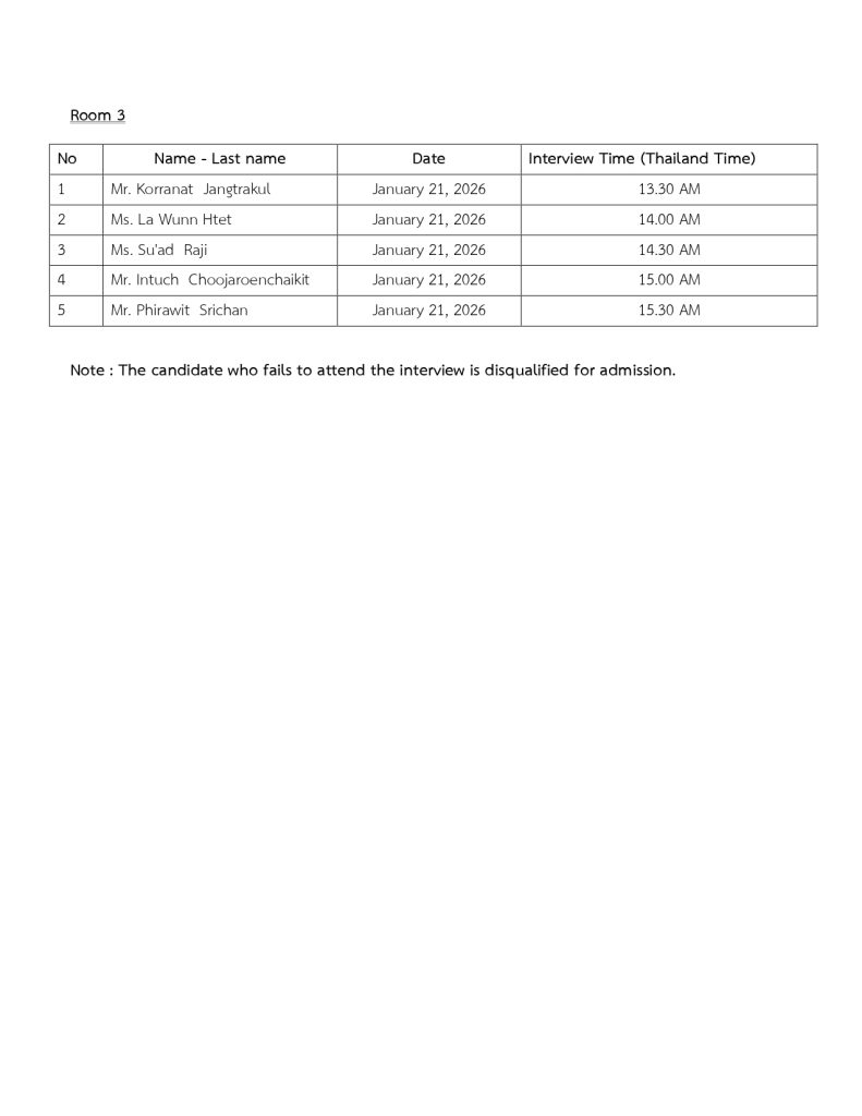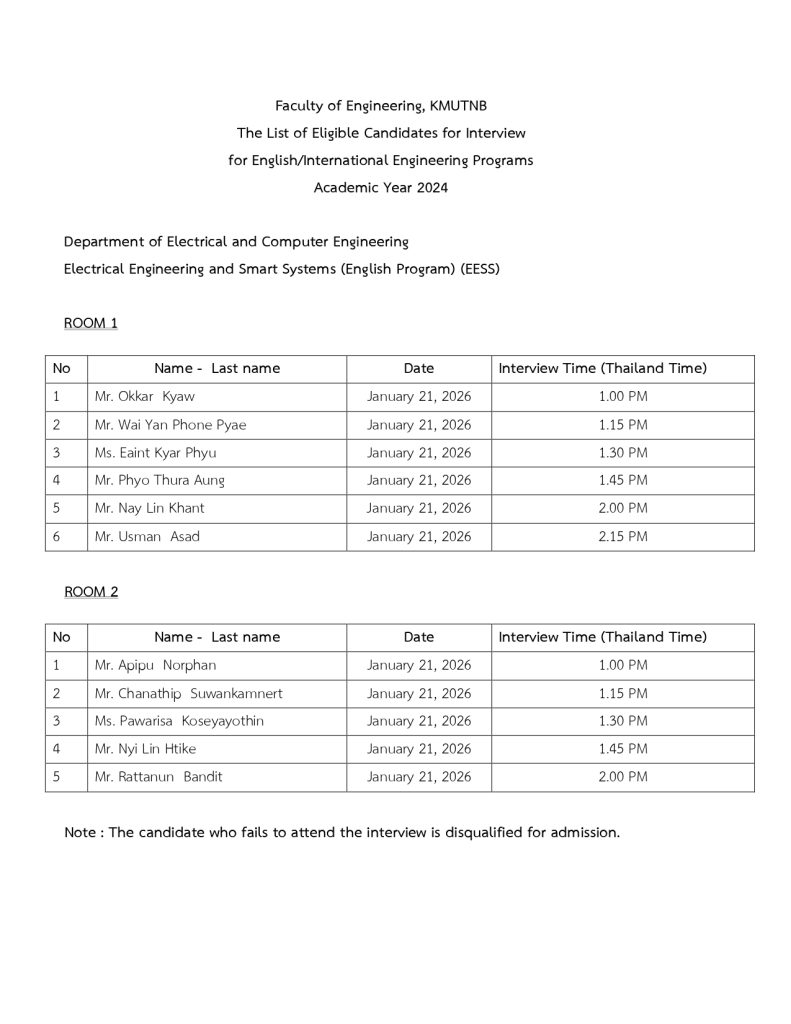 The List of Eligible Candidates for Interview for English/International Engineering Programs (Round 1) Academic Year 2026