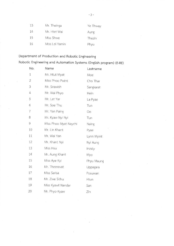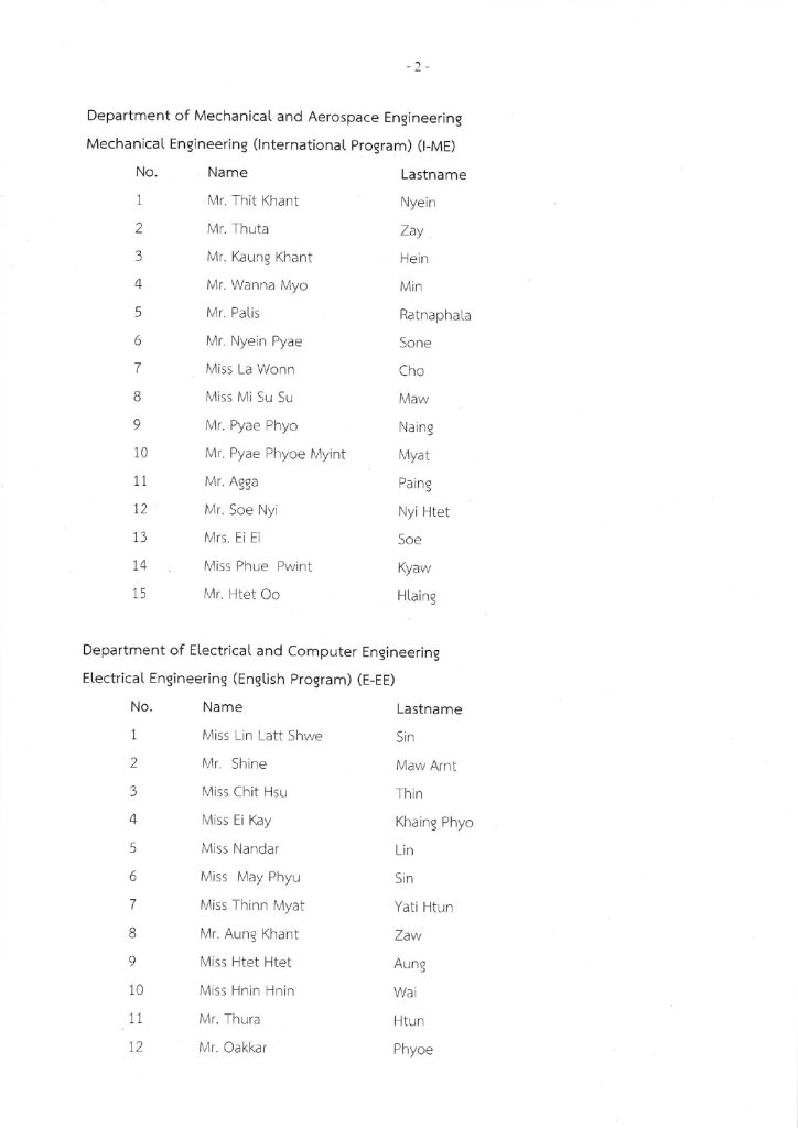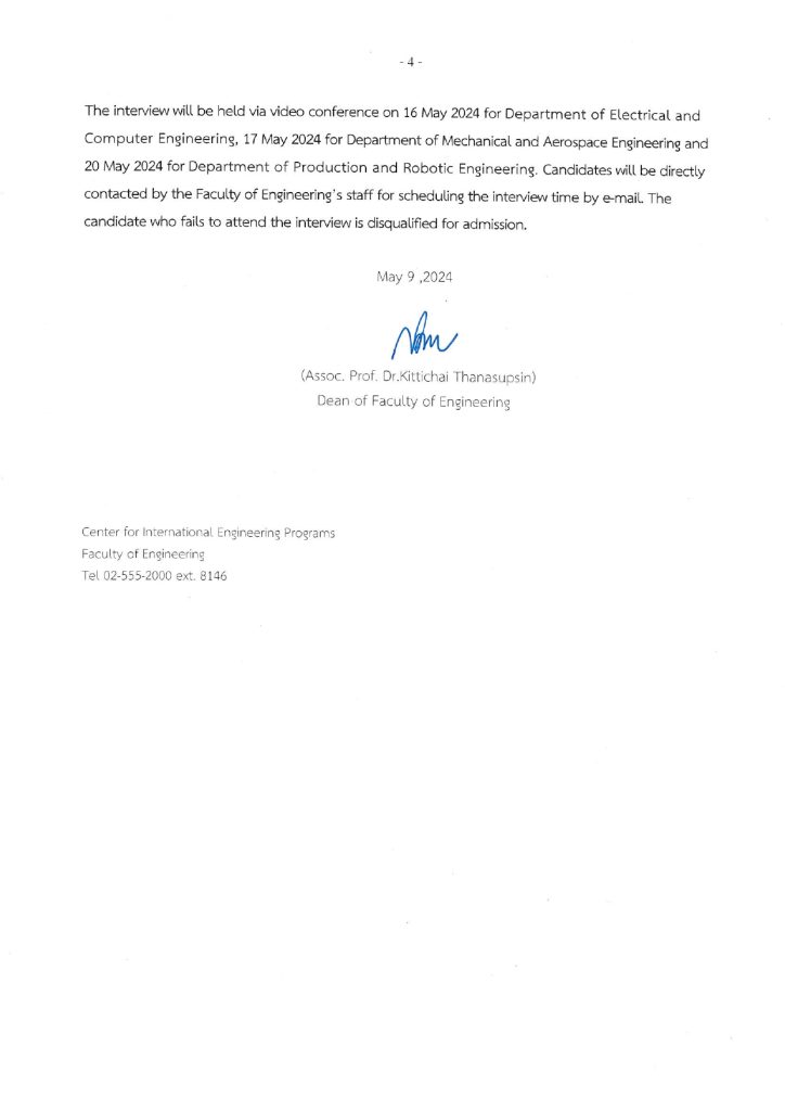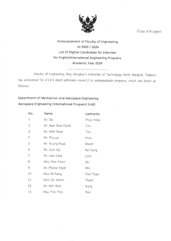 The List of Eligible Candidates for Interview Round for English/International Engineering Programs Academic Year 2024
