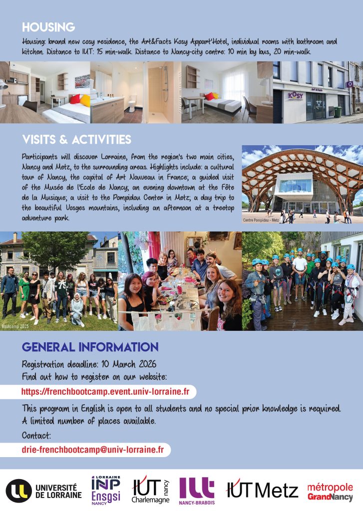 The summer school organised by Université de Lorraine from June 13 to 24, 2026 in Nancy (France).