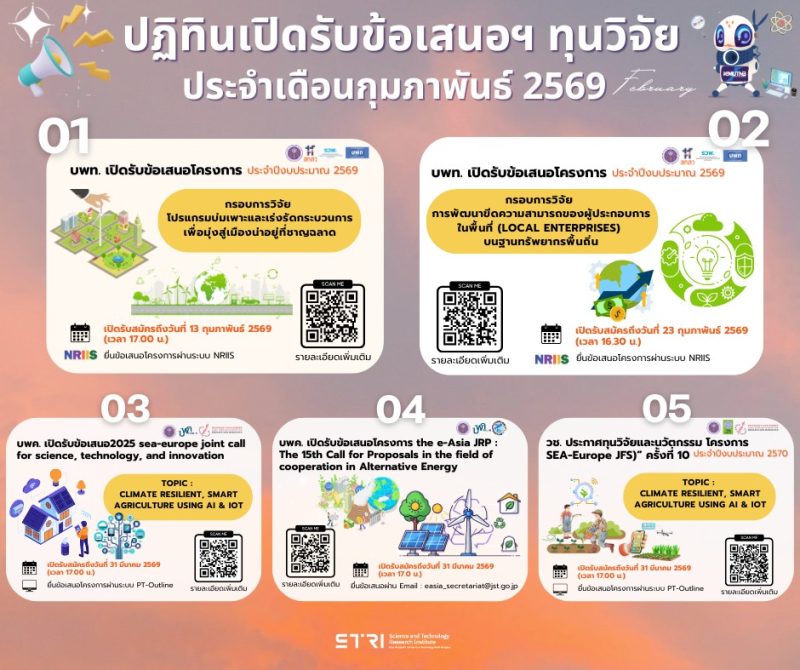 รวมทุนวิจัยเปิดรับข้อเสนอโครงการ ประจำเดือนกุมภาพันธ์ 2569